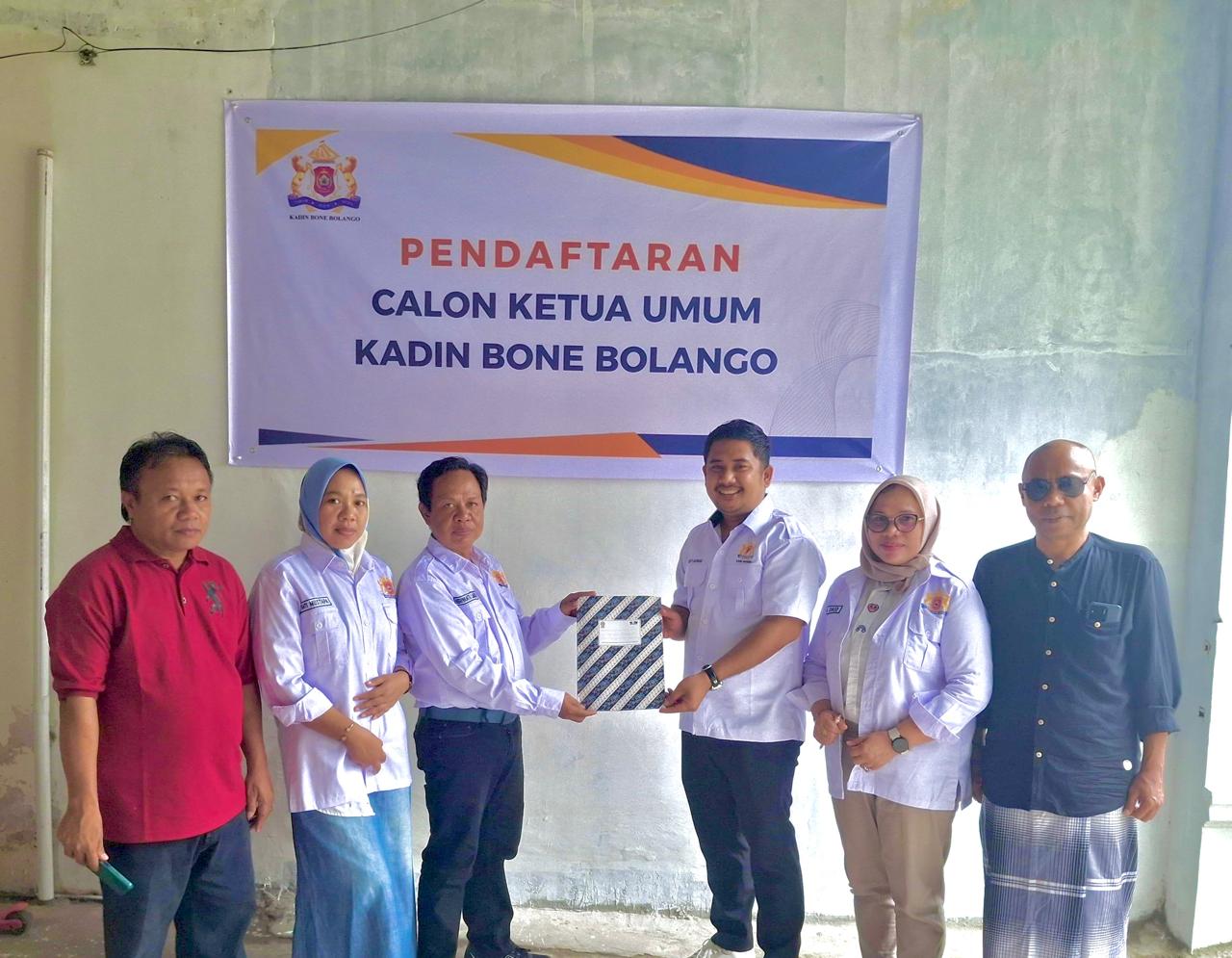 Gambar: Rizky Ahmad S.Pd.,M.Pd Calon Ketua Kadin Bone Bolango didampingi tim, saat menyerahkan berkas pendaftaran Calon Ketua.