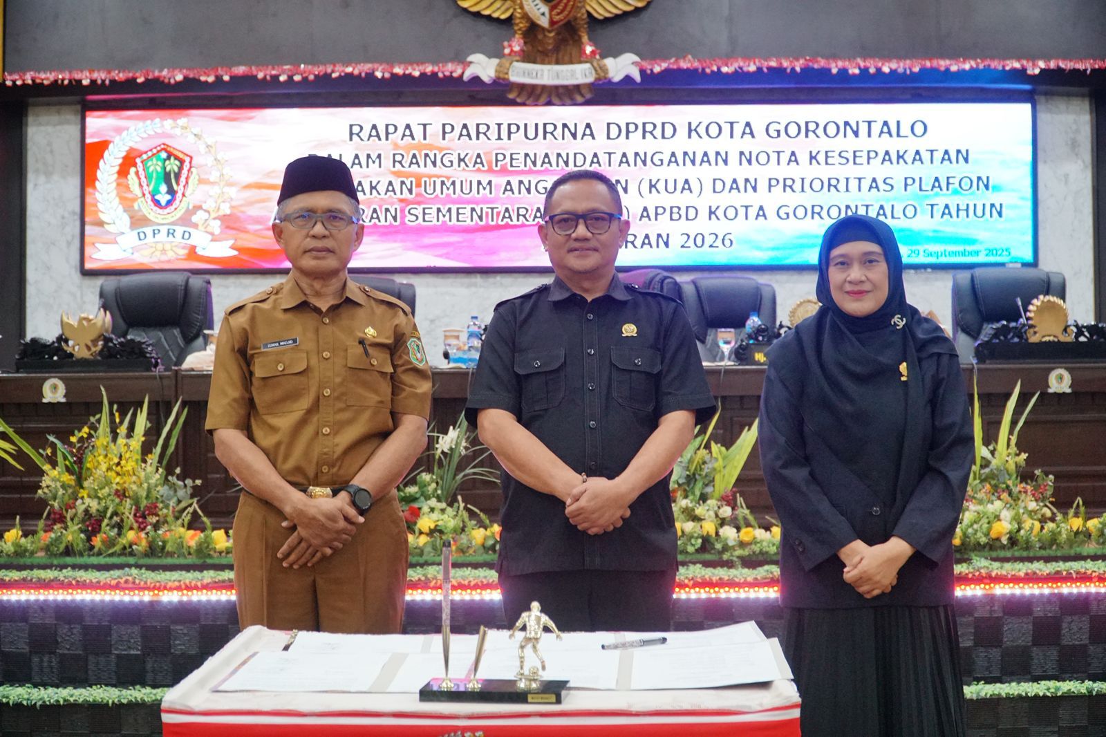TNews, GORONTALO – DPRD Kota Gorontalo menggelar rapat paripurna untuk menyepakati dokumen Kebijakan Umum Anggaran dan Prioritas Plafon Anggaran Sementara (KUA-PPAS) APBD 2026, Senin (29/9/2025).