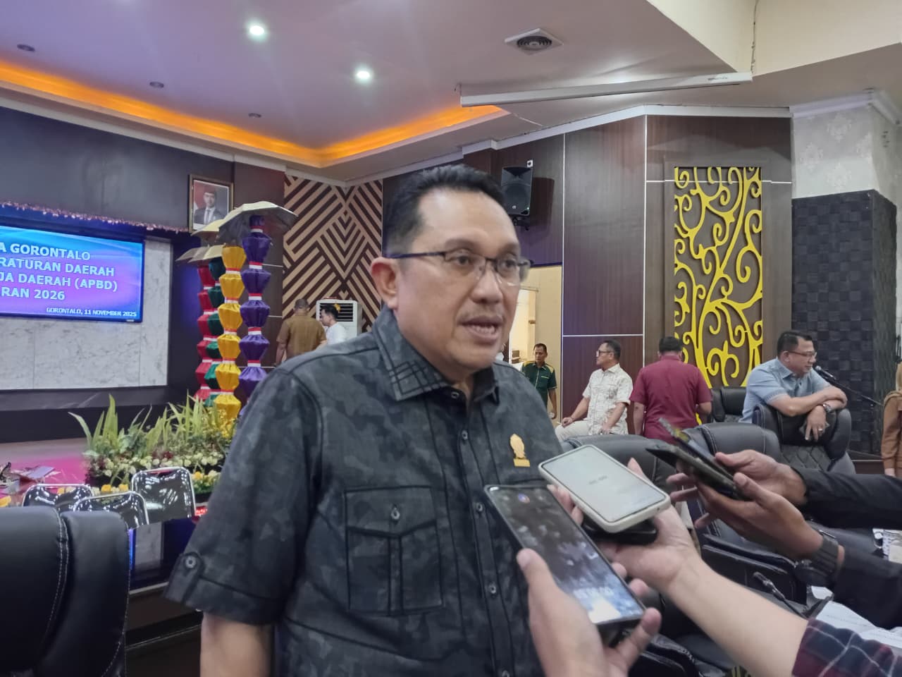 Gambar: Ketua Fraksi Golkar DPRD Kota Gorontalo, Totok Bachtiar saat diwawancari oleh awak media. (Foto : Gean Bagit).