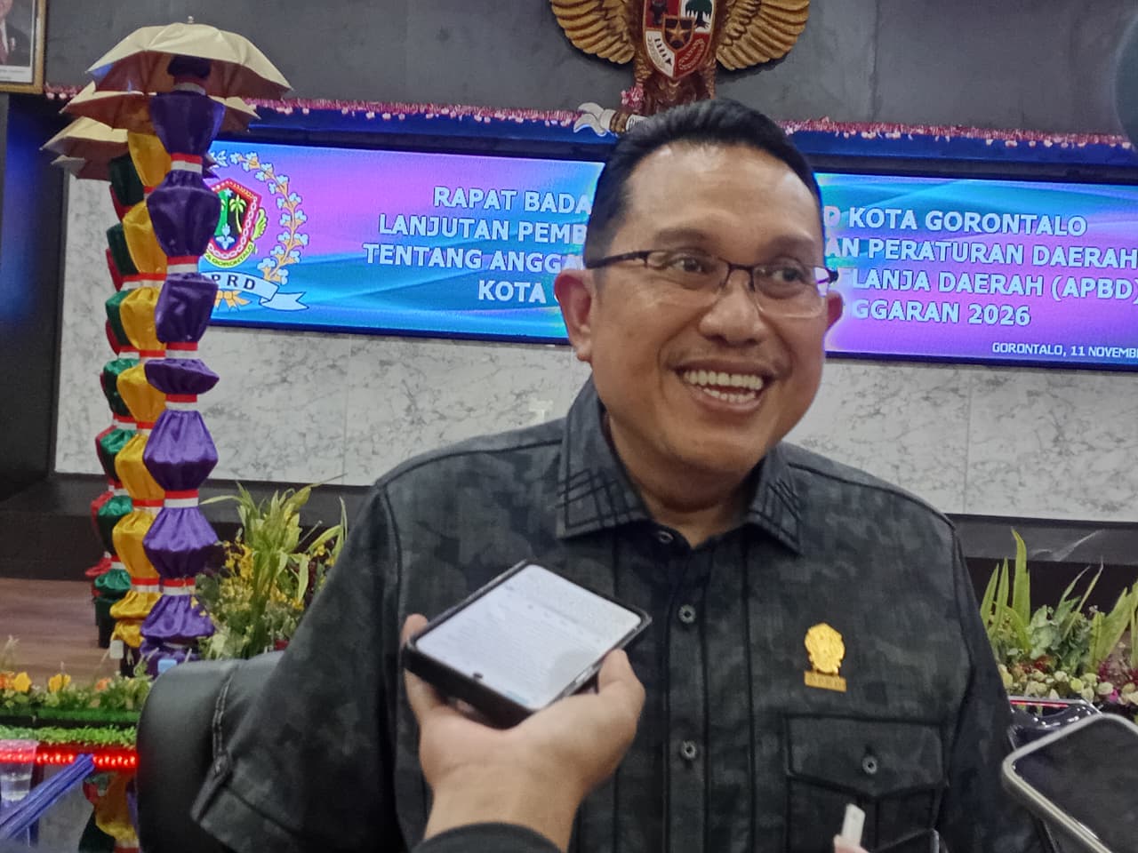 Gambar: Anggota DPRD Kota Gorontalo, Totok Bachtiar saat diwawancarai oleh awak media. (Foto : Gean Bagit).