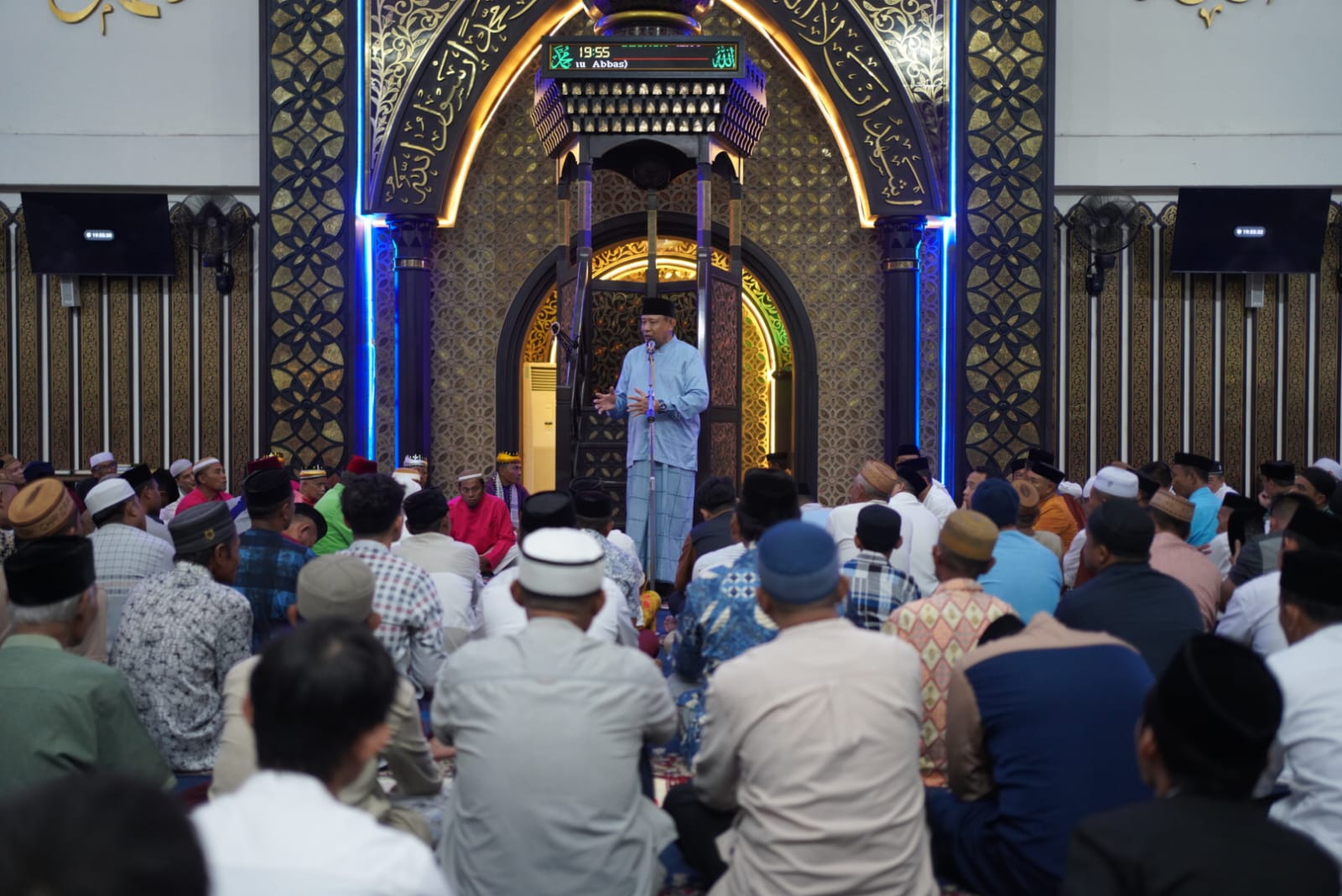 “Saya mengajak kita semua menjalani bulan ramadhan dengan hati yang senang, mesjid ini cerminan dari falsafah adat bersendikan syara dan syara bersendikan kitabullah”. Ujar Gusnar dalam sambutannya sebelum melaksanakan tarwih berjamaah di Mesjid Agung Baiturrahman, Limboto, Sabtu (21/02/2026).