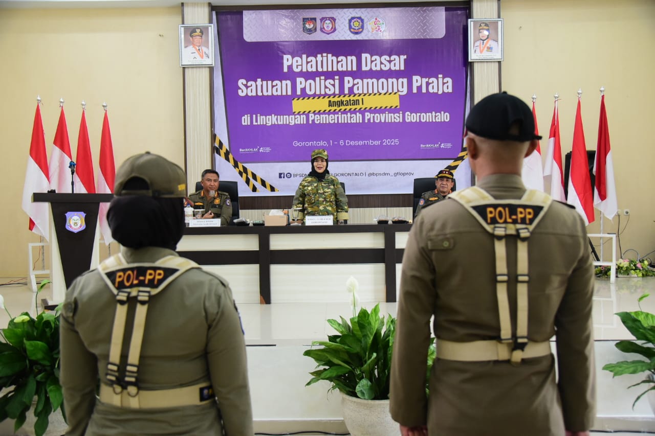 TNews, KOTA GORONTALO – Pelatihan Dasar Satpol PP Angkatan I di lingkungan Pemerintah Provinsi Gorontalo resmi dibuka oleh Wakil Gubernur Gorontalo, Idah Syahidah Rusli Habibie, pada Senin (1/12/2025) di Aula BPSDM. Kegiatan tersebut dihadiri Kepala BPSDM Provinsi, Budiyanto Sidiki, dan Kepala Satpol PP Provinsi Gorontalo, Taufik Sidiki.